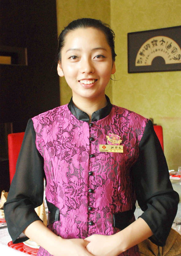 王潔,湘鄂匯大酒店二樓雅間***服務(wù)員,90后,精致的五官,嬌俏的身段,給人一種清新脫俗的感覺。2011年7月28日王潔入職宴天下大酒店新區(qū)店,同年10月調(diào)至湘鄂匯大酒店參加崗前培訓(xùn)。今年2月,湘鄂匯舉行了***批A、B級(jí)服務(wù)員考核,王潔被評(píng)為***服務(wù)員。