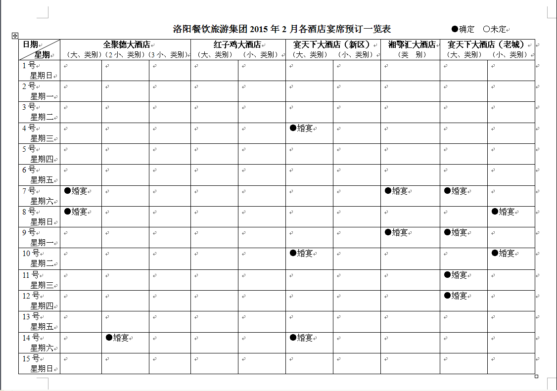 洛陽餐飲旅游集團(tuán)2015年1月-12月各酒店宴席預(yù)定一覽表 發(fā)布時間:2014-05-26來源:點擊:2462 分享到:0 用手機(jī)看 拍下二維碼,信息隨身看 試試用微信掃一掃,在你手機(jī)上繼續(xù)觀看此頁面。 上一篇:洛陽餐飲旅游集團(tuán)2014年5月-12月各酒店宴席預(yù)定一覽表 下一篇:洛陽餐飲旅游集團(tuán)2014年6月-12月各酒店宴席預(yù)定一覽表