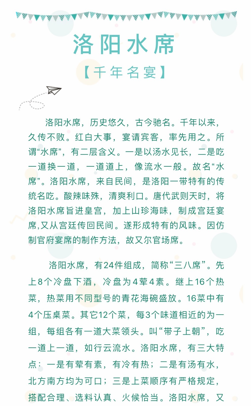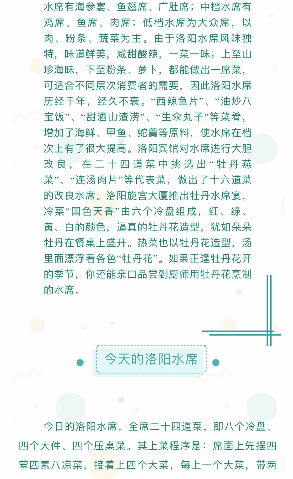 千年帝都,禮贊牡丹,邀您品洛陽水席 發(fā)布時間:2019-03-30來源:點擊:2570 第37屆中國洛陽牡丹文化節(jié)將于4月1日-5月5日舉行歡迎八方賓朋來洛陽賞牡丹,品水席。更多水席美食,就到洛陽餐旅旗下門店吧 分享到:0 用手機(jī)看 拍下二維碼,信息隨身看 試試用微信掃一掃,在你手機(jī)上繼續(xù)觀看此頁面。 上一篇:洛陽餐旅洛寧山區(qū)獻(xiàn)愛心 下一篇:牡丹宴之約·洛陽首屆牡丹詩詞藝術(shù)節(jié)盛大啟動