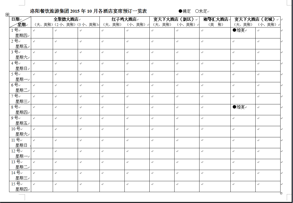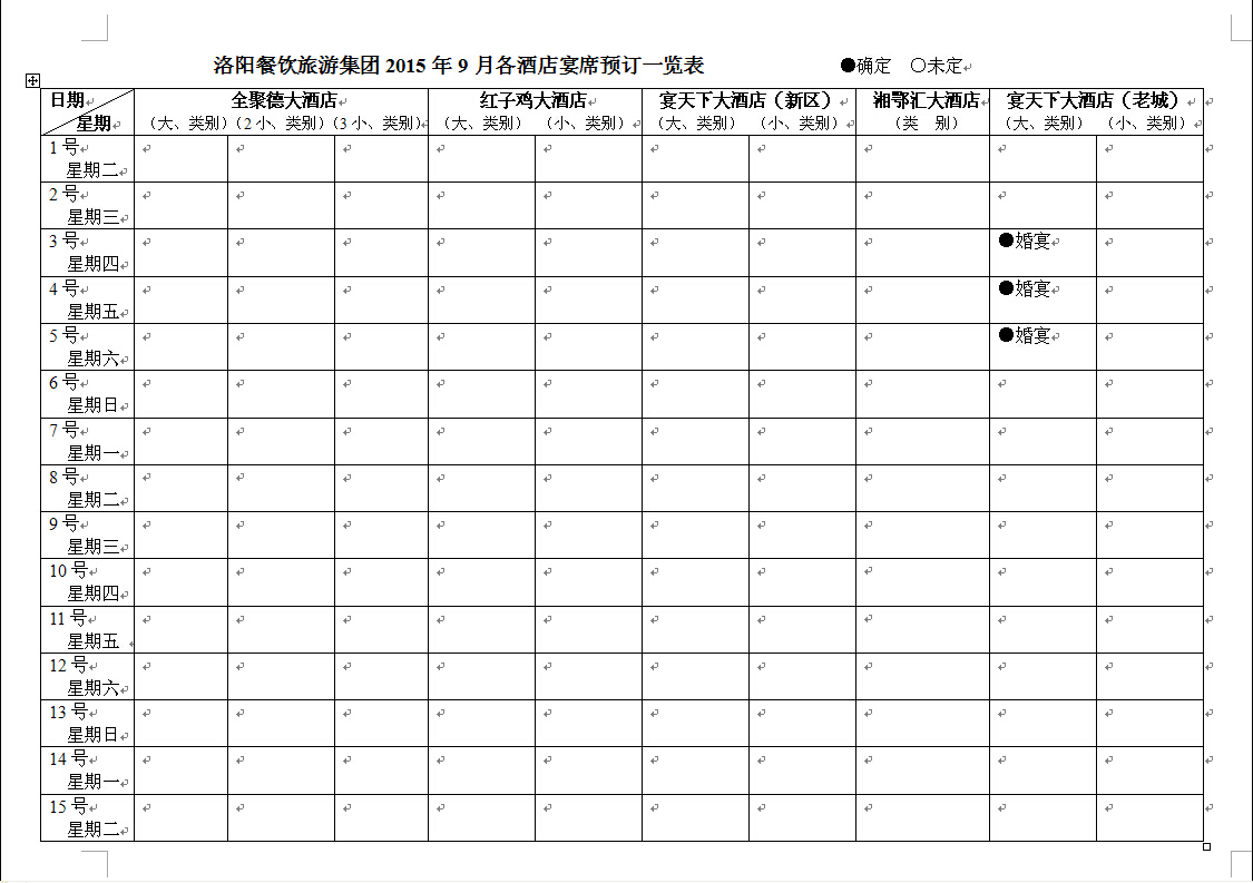 洛陽餐飲旅游集團2015年1月-12月各酒店宴席預(yù)定一覽表 發(fā)布時間:2014-06-09來源:點擊:2059 分享到:0 用手機看 拍下二維碼,信息隨身看 試試用微信掃一掃,在你手機上繼續(xù)觀看此頁面。 上一篇:集團公司會員卡六月上線入會即享多項好禮 下一篇:董事長申靈杰當(dāng)選清華大學(xué)洛陽企業(yè)家同學(xué)會常務(wù)副主席