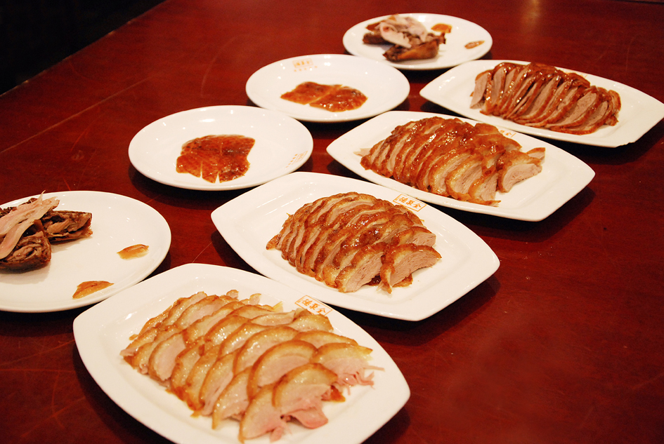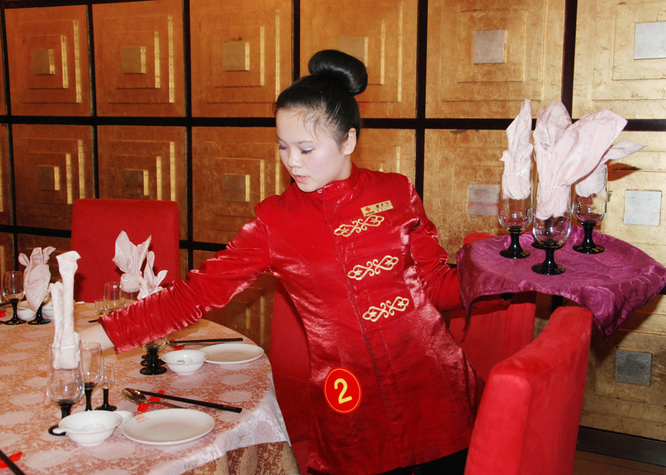 17日至21日為餐廳技能服務(wù)展示。其中17日至19日進(jìn)行的是中餐宴會鋪臺、斟酒、折口布花項目的比賽;20日進(jìn)行全聚德烤鴨、紅子雞、宴天下歷史介紹;21日進(jìn)行片鴨比賽。