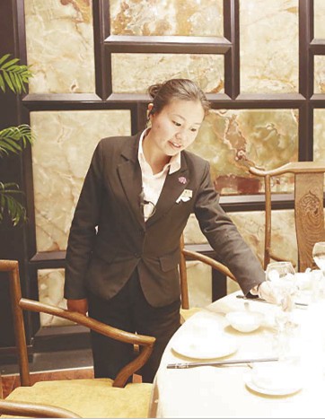 王薇說,她很享受現(xiàn)在的生活。工作起來得心應(yīng)手,和同事們相處得也很融洽。她平時還負(fù)責(zé)五樓的休假安排,同事們都很友好,如果誰有什么事情需要臨時休息,大家都會互相謙讓,讓確實需要休假的同事先休息。王薇說,在宴天下老城店,每一天都是開開心心地度過,雖然有時會很累,可是王薇不后悔這樣的選擇。因為她始終堅信:是金子總會發(fā)光的?。ㄇり枺?/p>