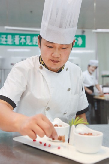 2010年12月,宴天下新區(qū)店開(kāi)業(yè),擁有豐富涼菜烹調(diào)經(jīng)驗(yàn)的遠(yuǎn)海龍被聘為涼菜主管。工作中,他嚴(yán)抓菜品質(zhì)量,工作之余,他經(jīng)常組織同事們聚餐,互相交流經(jīng)驗(yàn)。新菜品品鑒會(huì),遠(yuǎn)海龍烹調(diào)的涼菜獲得***名,他說(shuō):“這要感謝廚師長(zhǎng)梁進(jìn)球?qū)ξ业闹笇?dǎo)和鼓勵(lì),他激發(fā)了我的靈感。”當(dāng)采訪中問(wèn)及他是否考慮學(xué)習(xí)熱菜烹飪時(shí),他認(rèn)真地說(shuō):“專一才能做得更好?!?br>