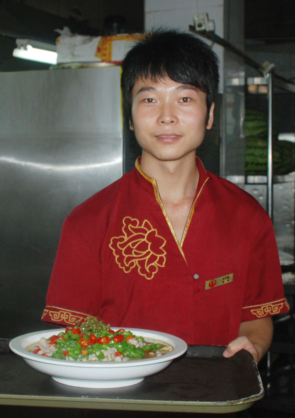 李虎建,22歲,洛陽嵩縣人,紅子雞大酒店備餐員。眼前的他眉清目秀,真是一個帥小伙。