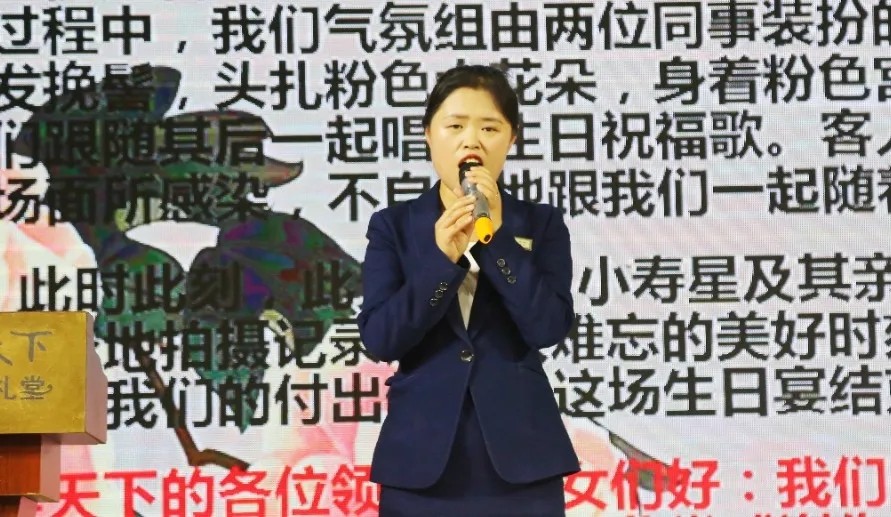 在感動服務(wù)案例分享中,有喜歡廚藝又熱愛捕捉新聞的后廚員工,有講述洛陽牡丹故事、推薦牡丹宴酒的服務(wù)人員,有全程周到服務(wù)、貼心策劃宴席的前臺工作人員,有敬業(yè)愛崗、時刻為客人著想的安保人員……餐旅的家人們在日常點滴中,送上一次次感動服務(wù)。