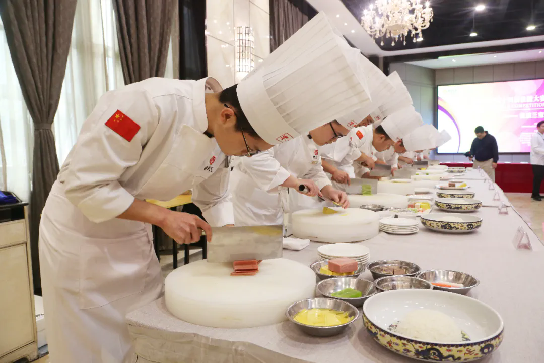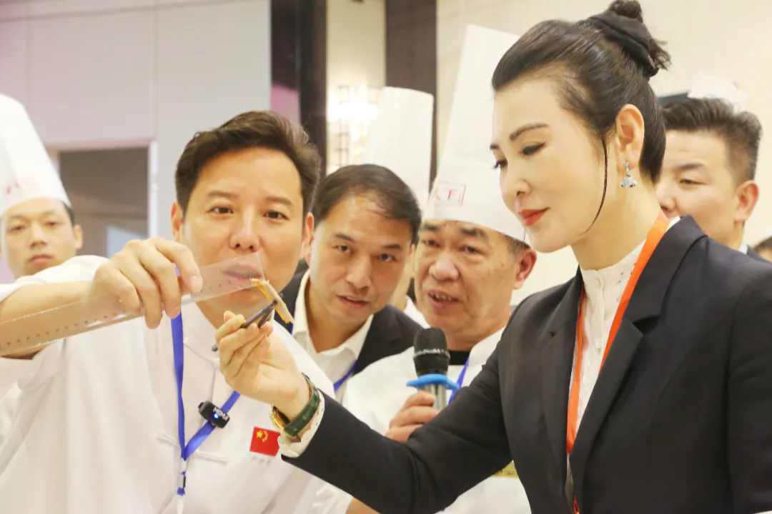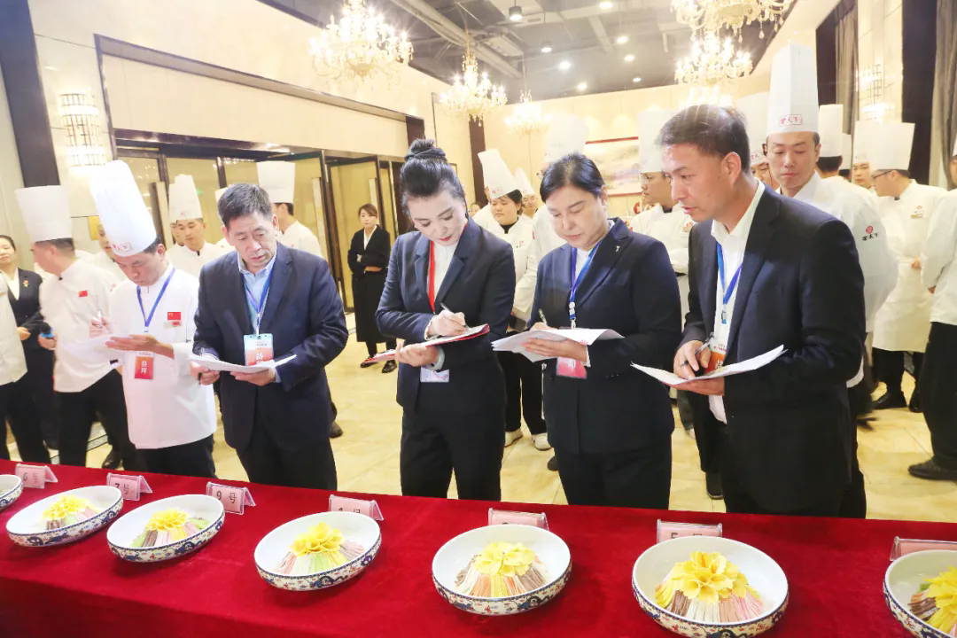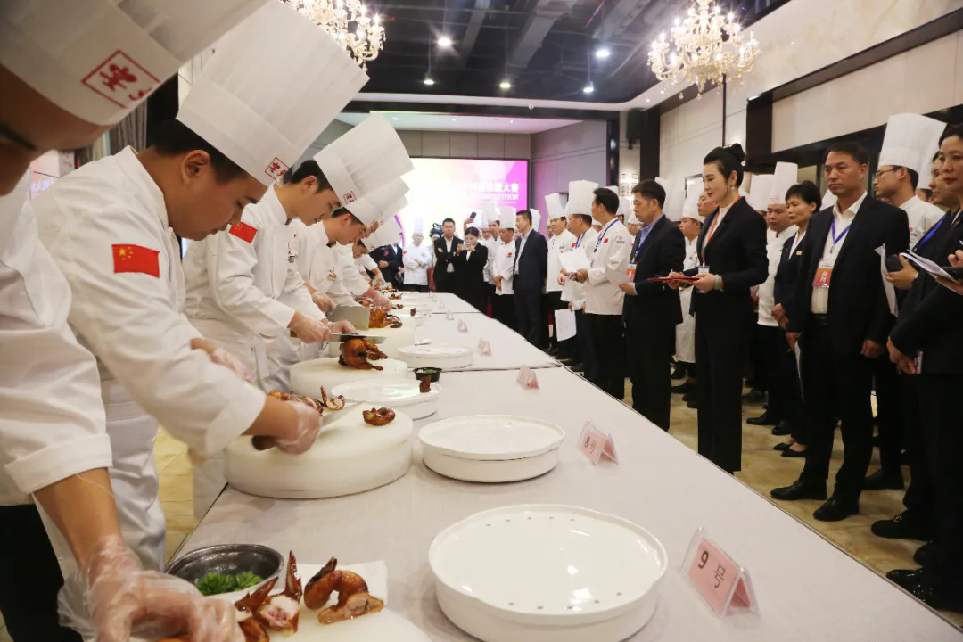 在19日的比賽中,分別進行了T臺形象展示、備餐技能展示、餐旅三寶廚藝展示,來自各店的參賽者身著職業(yè)裝,自信登場,展現(xiàn)職業(yè)技能。在“餐旅三寶”(烤鴨、水席、紅子雞)的現(xiàn)場制作,評委依據(jù)菜品的外觀、色澤、擺盤、口感、刀法技能、操作姿勢等方面進行評分。